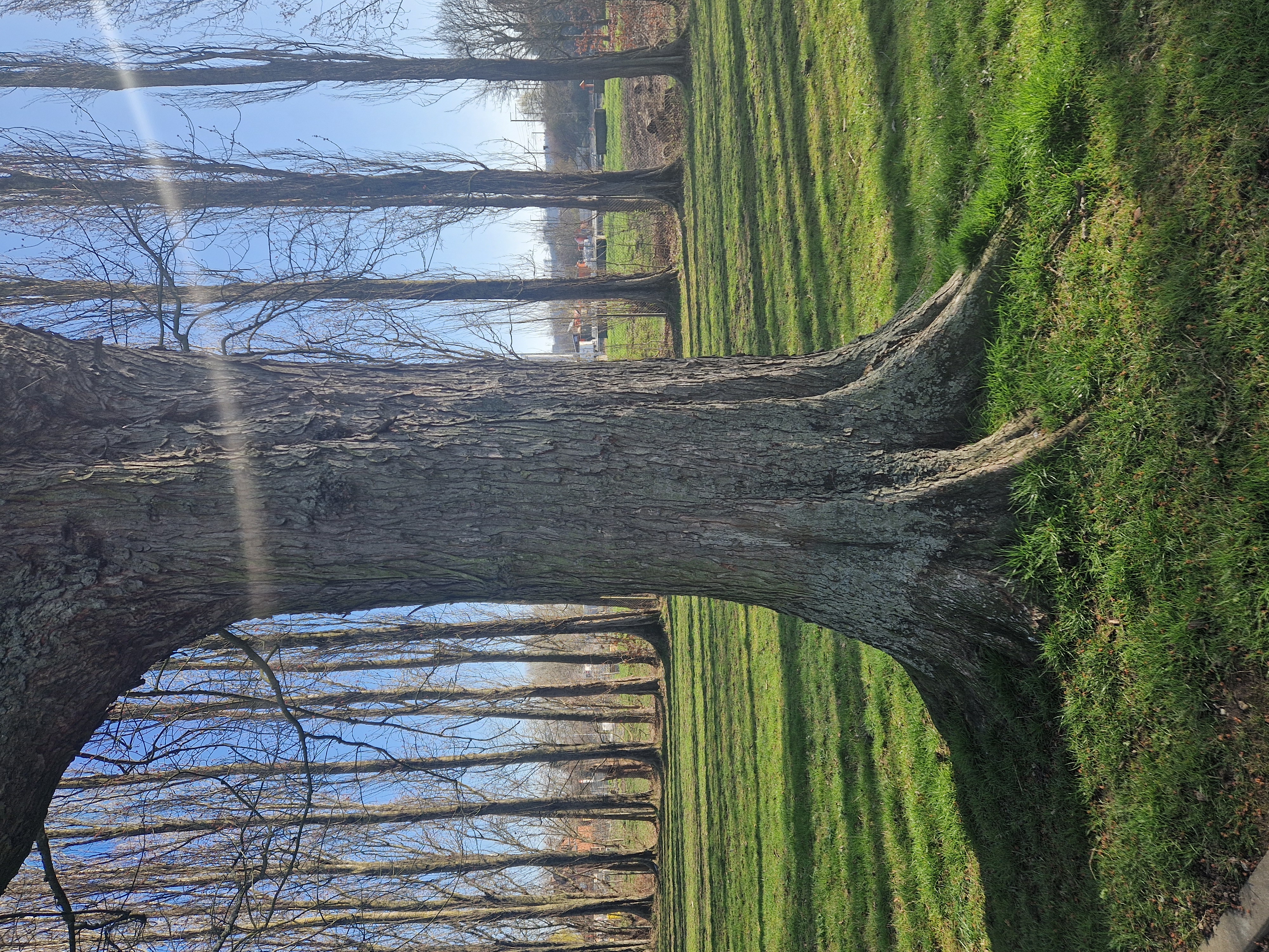 Plantation en alignement. Arbre en partie visible de la voirie.