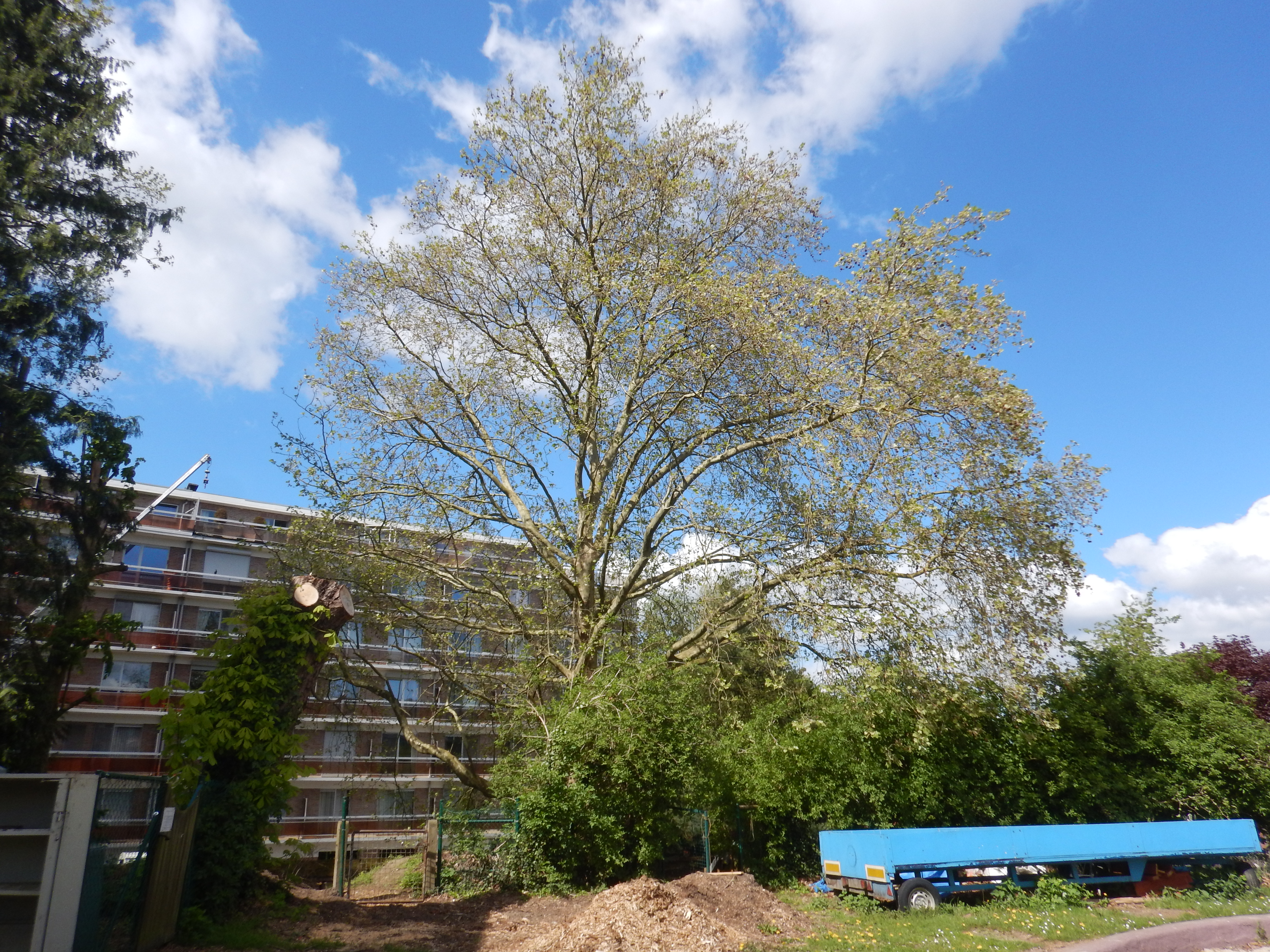 Groupe de moins de 5 arbres. Arbre en partie visible de la voirie.
